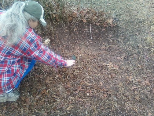 In the picture above, Sherriee has found an egg that a rooster has hidden for gathering later.